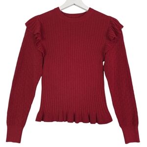 La Vie Rebecca Taylor Cotton Cozy Pullover Sweater in Carmine