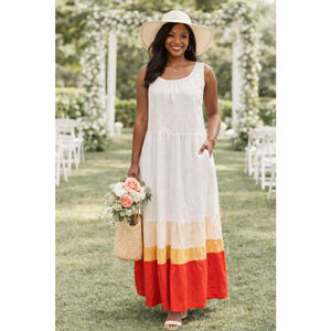 Ava & Viv 2X Maxi Dress Boho Tiered Colorblock Pockets Cotton Summer