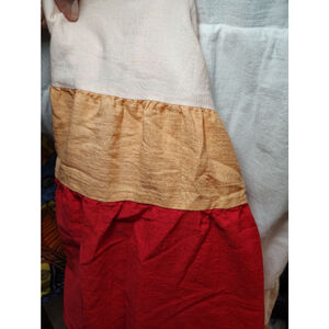 • Eye-catching colorblock hem (cream, peach, golden, red)
