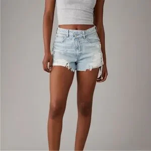 American Eagle High Rise Strigid Distressed Denim Mom Short Faded Light Size 2