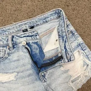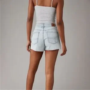American Eagle High Rise Strigid Distressed Denim Mom Short