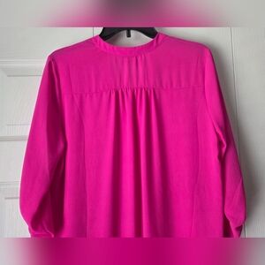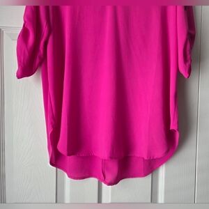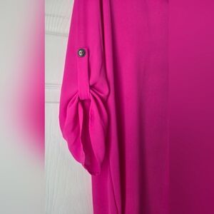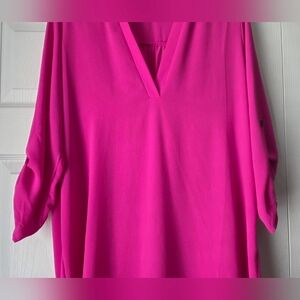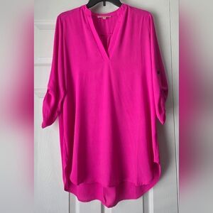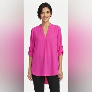 Vivid fuchsia tunic with a relaxed fit. Split V-neckline for a flattering look.