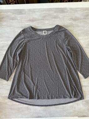 Anne Klein Women's Grey Polka Dot 3/4 Sleeve Knit Swing Top