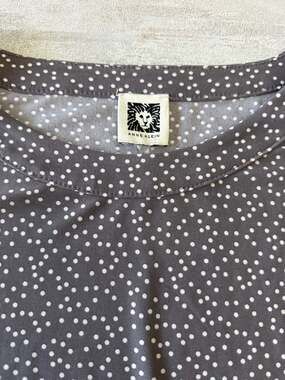 Anne Klein Grey Polka Dot Knit Swing Top, Women's Size Large — Sophisticated and comfortable.