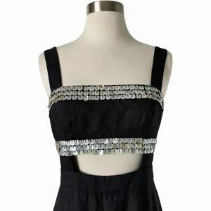 STAUD Mickey Dress 2 Black Linen Sequin Cutout Maxi Dress Evening