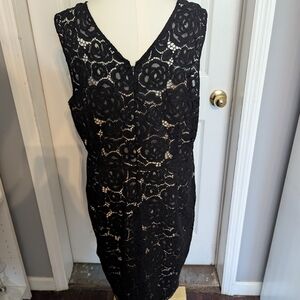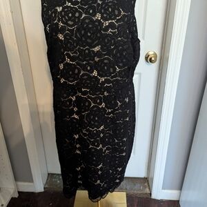 Ellen Tracy Black Floral Lace Midi Dress