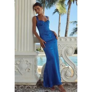 NEW Runway the Label Oura Maxi Dress XL Cobalt Blue Satin Corset Date Night