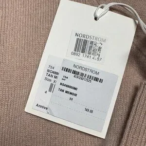 Brand new with tags Nordstrom 100% Cashmere Crewneck Sweater in the shade Tan Memoir, a warm neutral that flatters every wardrobe. Luxuriously soft, lightweight, and perfect for layering. Classic crew neckline with ribbed trim.