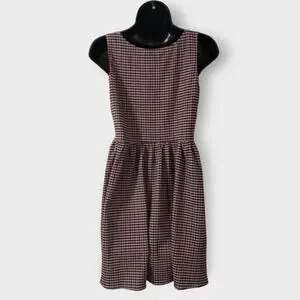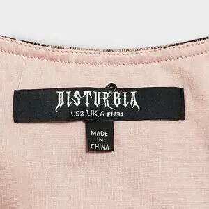 Disturbia Midora Crinkle Check Plaid Mini Skater Dress Pink Black Sz 2US Goth