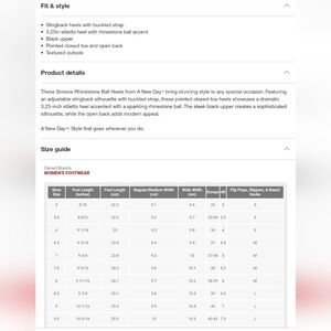 Sleek black pointed slingback flats from a new day. Comfortable memory foam insole for all-day wear. Secure ankle strap with adjustable buckle. Minimal, modern style that pairs with work or weekend outfits.