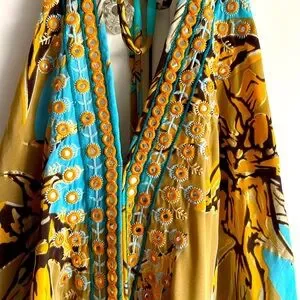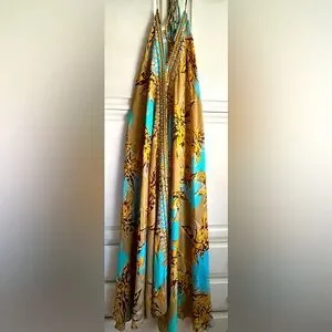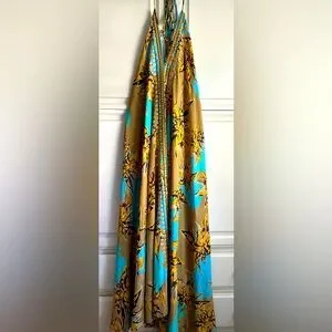 π§‘π©΅Karma Highway Boho Embellished Mirror Work Halter Maxi Dress Floral OS π€πͺ