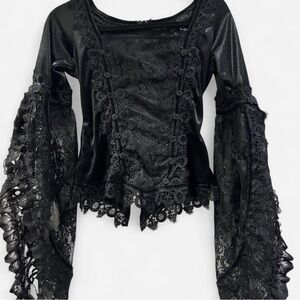 Sinister Black Gothic Lace Top Size Small Bell Sleeve Witchy Blouse