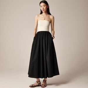 New JCREW Size XXS Strapless Colorblock Mixy Dress Black & Natural $128 CJ391