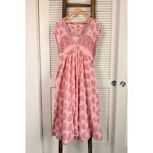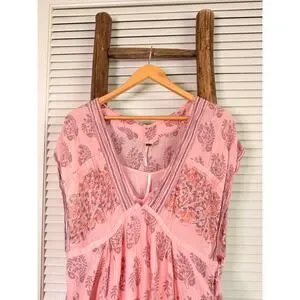 Free People Midi Dress Womens XL Pink Paisley Embroidered Boho Gauze