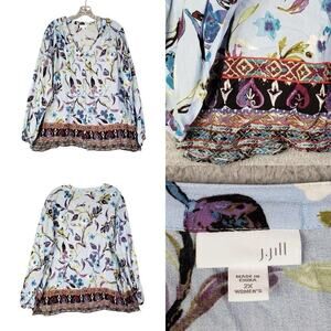 J Jill Shirt Top Women’s Plus Size 2X Blue Floral Button Up Long Sleeve Rayon