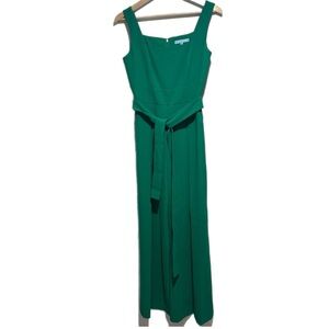 Elegant jumpsuit with a sleek design. Features a rich green color and a stylish belt. Perfect for versatile wear. In great used condition. Belt is not attached.
