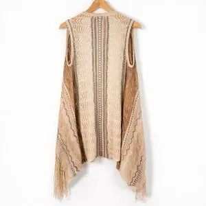 Festival Crochet Open Knit Vest Womens Large Boho Southwestern Indie Tribal