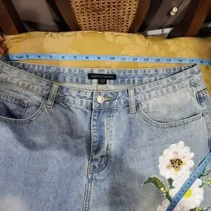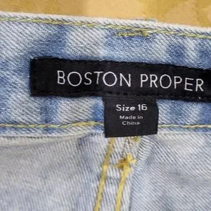 Like new Boston Proper sequined gloral embellished cropped ankle jeans. Measures about 17" flat across the waist, 11" along the front rise and 27" along the inseam. Tapered slim fit.