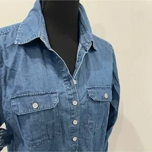 New York & Co Denim Long Sleeve Button Up
