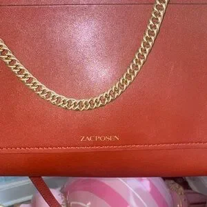 Stylish crossbody bag by ZAC Zac Posen. Features a sleek red design with a gold chain strap. Perfect for any occasion.