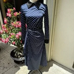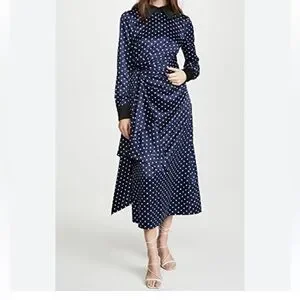 KEEPSAKE. NWOT. Foolish Long Sleeve, Midi Dress in Navy/Porcelain in Pol…