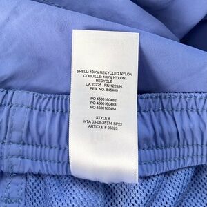 These are mid-rise, pull-on shorts with a 3" inseam. They’re made from water-repellent, 100% recycled nylon.