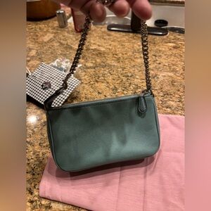 COACH TEAL HAWAIIAN FLORAL EMBROIDERY BEADED LARGE CHAIN WRISTLET F29378