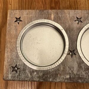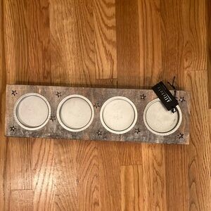 Rustic Candle holder with light up stars. Candles not included. I tried to take a picture with the stars lit but it’s hard to see.