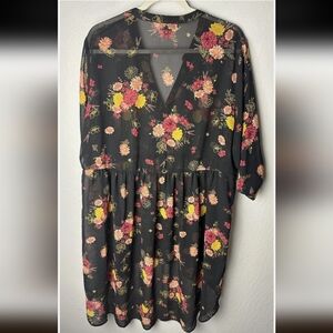 Torrid Black Tunic blouse with Pink, Red and Yellow Floral Print