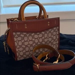 Coach Brown Rogue 25 Signature Canvas Satchel with Leather Trim Price is firm