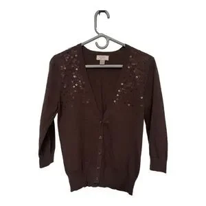 Ann Taylor LOFT Women’s Small Brown Sequined Cardigan
