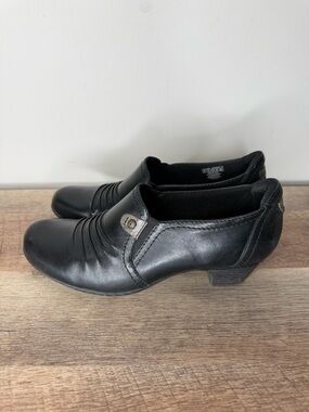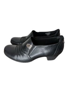 ROCKPORT Black Leather Cobb Hill Adele Shoes Shoeties Ridges Block Heel Size 9