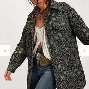 free people jacket, tapestry jacket, jacquard coat, boho jacket, oversized shirt jacket, shacket, western boho, festival style, fall layering