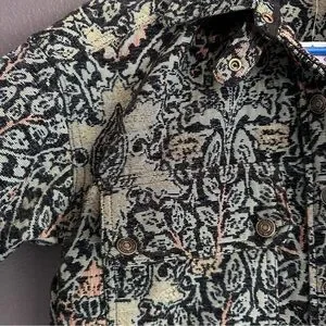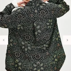 Free People We The Free Tapestry Fog Jacquard Shirt Jacket XS Boho Oversized