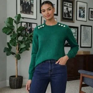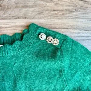 Keywords/Tags: crown and ivy sweater, green knit sweater, embellished shoulder sweater, petite small sweater, classic crewneck sweater, casual chic knitwear, everyday green sweater, polished casual top, fall winter sweater women, soft knit pullover, preppy casual style, work to weekend sweater, cozy layering piece, minimalist knit sweater, timeless wardrobe staple