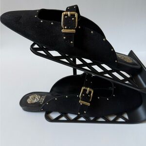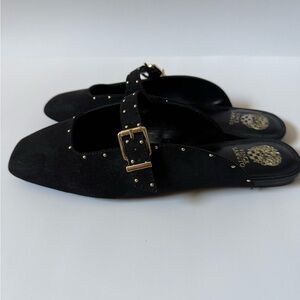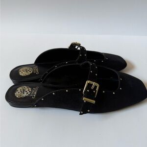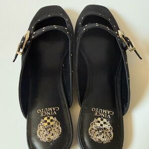 Vince Camuto Black Studded Buckle Mules