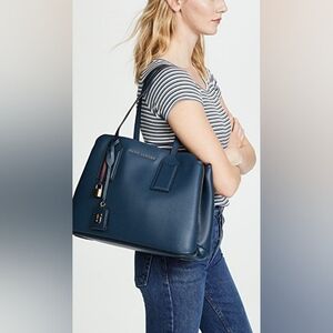 MARC JACOBS Editor Leather Tote Bag Blue Sea Navy Red Everyday Versatile Classic