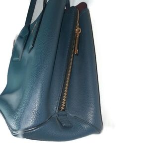 Measuring approximately 15.25" in width, 10" in height, and 6.25" in depth, it is designed to be spacious enough for everyday use while maintaining a stylish appearance. The "Editor" tote is known for its three compartments, providing ample space for items like tablets, documents, and personal belongings.