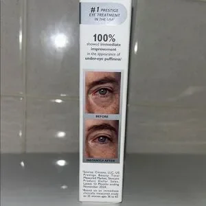 Temporary eye tightener for targeted firming. Sleek black tube with clear white text. Helps smooth the look of fine lines. Designed for use around the eye area. a-2-10