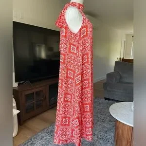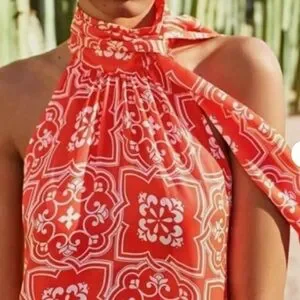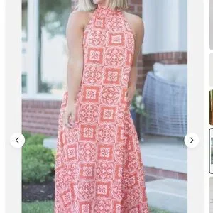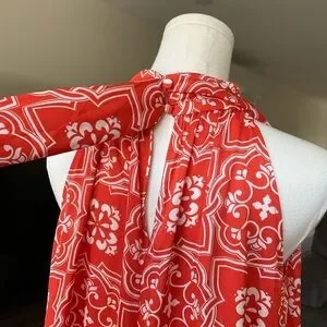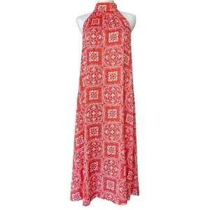 Ann Taylor Tiled Flowy Tie Neck Halter Maxi Dress
