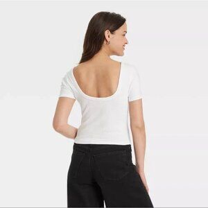 Universal Thread Women's Ribbed Shrunken Short Sleeve Scoop Neck Tee Gray XL NWT