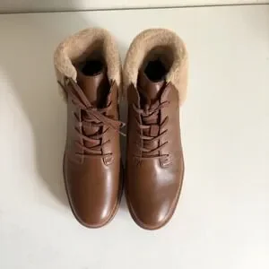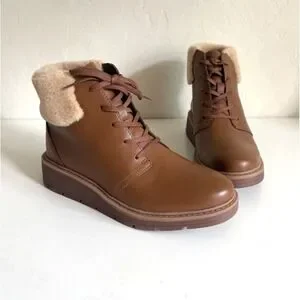 CLARK Leighly Lace Boot Women's Size 8M Brown Faux Fur Trim Ankle Bootie NIB