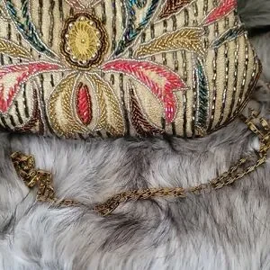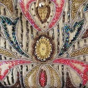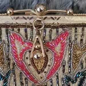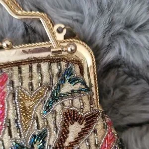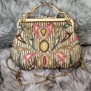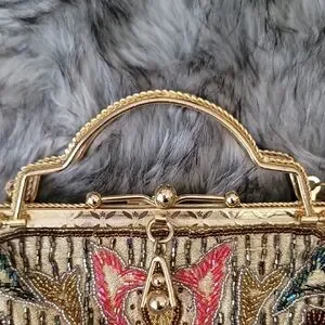 This stunning vintage-like clutch features a luxurious gold frame with vibrant multicolor beading , perfect for elevating any ensemble.