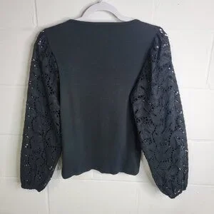 J Crew Lace Sleeve Top Black Size Small CD270 Sheer Whimsygoth Preppy Career