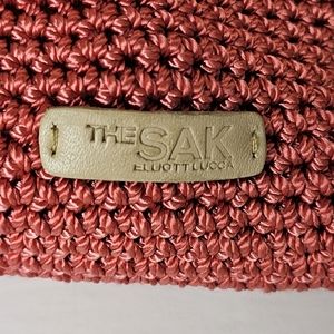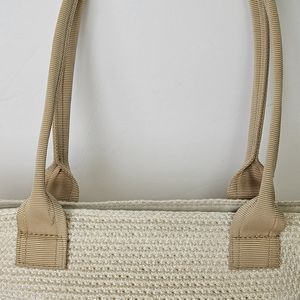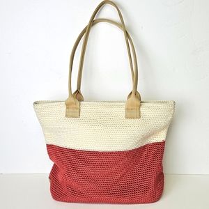 The Sak Shoulder Bag Peach and Cream Crotched Woven Zip Top Beachy Boho