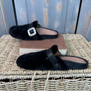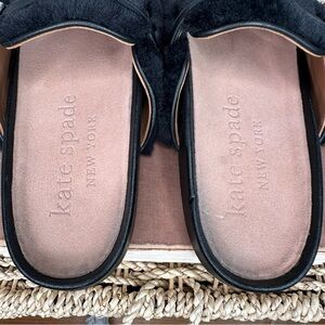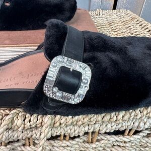 Kate Spade Cici Faux Fur Embellished Mules Flats Black Sz 7