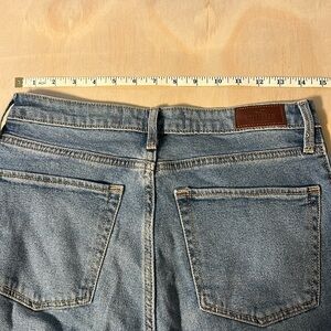 These pants are lightly used, with normal wear and tear, but overall in good condition! These are a size 7R or 28/31 Curvy Ultra High Rise Dad Jean by Hollister. They are a light wash with extreme distressing down the front legs. Comes from a non-smoking household.