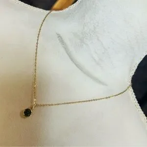 Vintage faceted peridot glass stone pendant on chain necklace, dainty and elegant, peridot tone faceted glass stone salvaged from old jewelry, added to new 18kt gold plated stainless steel sparkle rolo chain, lobster claw clasp, 18” long, pendant 5/8” long including spring ring.