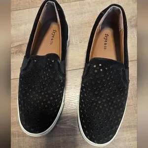 Frye & Co ($130) Perforated Suede Slip-On Sneakers Black Casual Comfort Shoes