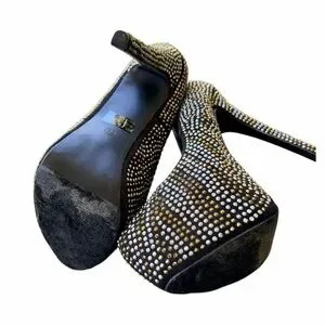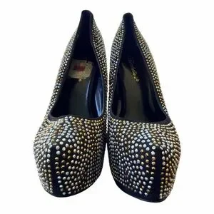 Breckelle’s Woman’s Black Studded Platform Pumps Crystal Stilettos Size 7 1/2